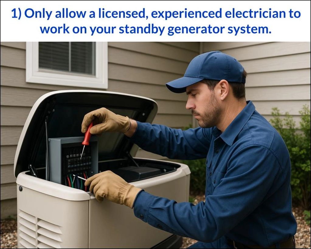 Standby systems involve live AC power, gas piping, transfer switches, and utility interconnections. A licensed professional will pull permits and follow code and manufacturer instructions. Do not DIY.