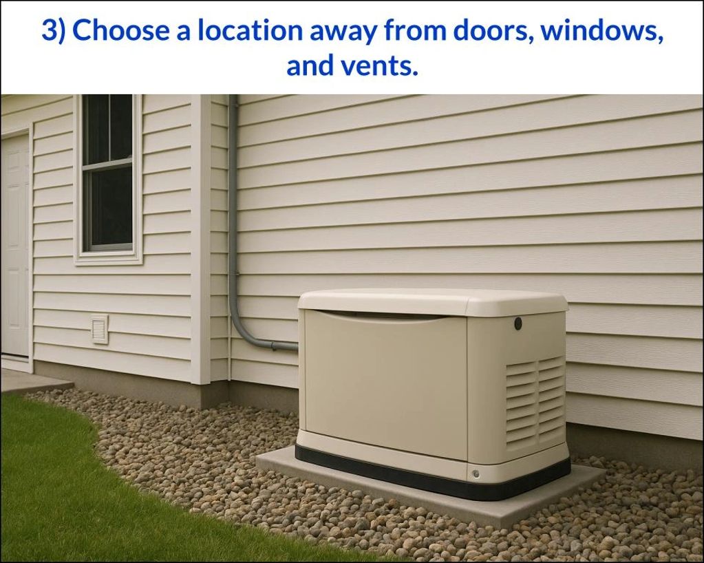 Follow manufacturer and local clearance requirements to prevent exhaust intrusion. Place units outdoors on a code-compliant pad with safe service access.
